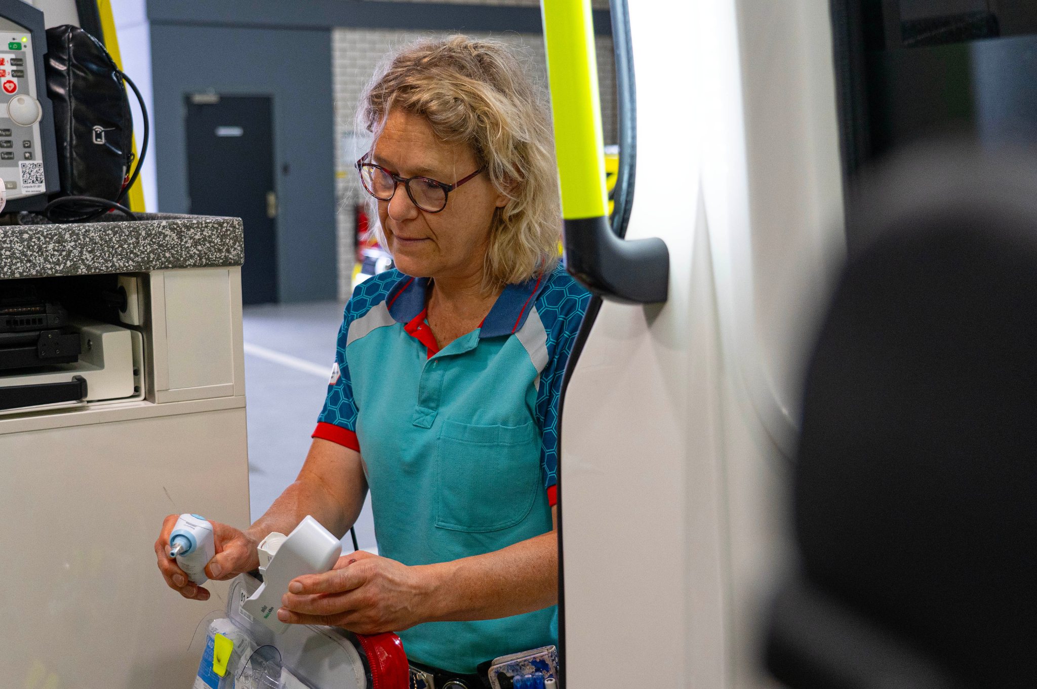 ‘De zorg ambu is inmiddels de laag-en middencomplexe ambulancezorg geworden. De hoofdmoot bestaat uit het vervoeren van mensen die laagcomplex zijn. Dat zijn mensen die medische zorg nodig hebben en niet met eigen vervoer kunnen, zoals patiënten die een bestraling, chemo of bloedtransfusie nodig hebben, patiënten die gaan revalideren of palliatief naar huis gaan. Maar soms zijn het ook mensen die bewaakt overgebracht moeten worden. Bijvoorbeeld omdat er een cardiaal of neurologisch ziektebeeld is. Dit zijn de patiënten die je stabiel meeneemt, maar waarbij er een risico is dat ze onderweg verslechteren. We doen steeds meer ritten waarbij we patiënten vanaf (verpleeg)huis naar het ziekenhuis moeten verplaatsen. Zoals oudere mensen die gevallen zijn of die niet goed meer voor zichzelf kunnen zorgen. Er is dan geen sprake van spoed, maar er is wel zorg, observatie en klinisch redeneren nodig. Soms is de huisarts al langs geweest en krijg je een overdracht, maar daarnaast moet je ook zelf vaststellen wat er nodig is. Dit vraagt meer professionaliteit, zodat je een patiënt goed kunt verzorgen en de juiste overdracht kunt doen. Onze afdeling krijgt steeds meer van dit soort ritten, zodat bij de Spoedambulance de focus op de spoedritten kan liggen. Aan de ene kant word ik daar heel enthousiast van, want het maakt het werk uitdagender en er is meer afwisseling. Maar het vraagt ook wat van je, want je voelt wel een grotere verantwoordelijkheid. Dat is op een ambulance sowieso anders dan wanneer je op een afdeling in het ziekenhuis werkt. Je staat er samen met je ambulancechauffeur voor. Natuurlijk is er ook overleg mogelijk met je collega’s of MMA, maar soms moet je snel handelen.’